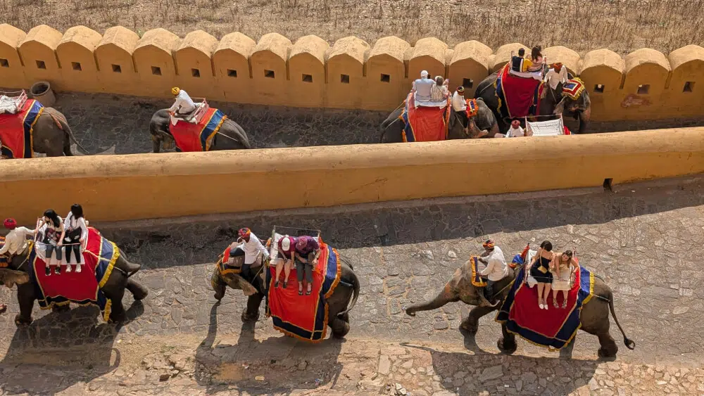 Spend the day exploring Jaipur’s highlights, including the Amber Fort (with optional elephant or jeep ride), Jal Mahal, Hawa Mahal, and the City Palace. Browse local handicrafts at the Carpet & Textile House and visit The Gem Palace for fine jewelry. Overnight stay in Jaipur.