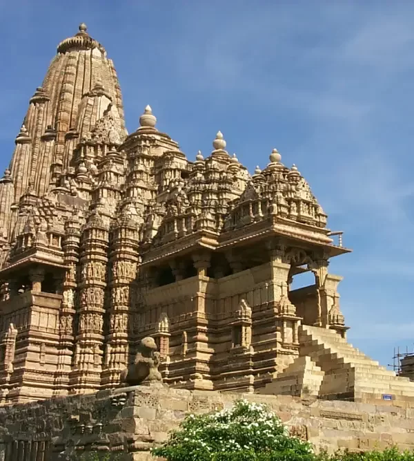 Begin your journey at the majestic Western Group, home to the most ornate temple cluster in Khajuraho, including the iconic Kandariya Mahadeva Temple—rising 31 meters high and adorned with nearly 900 intricate sculptures depicting deities, dancers, and divine figures.